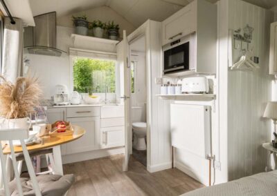 Step inside to find an open-plan living area, a fully equipped kitchenette and a comfy double bed to snuggle up in.