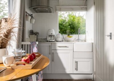 - Kitchenette: fully equipped with electric hob; microwave; fridge freezer; coffee maker; and Belfast sink.