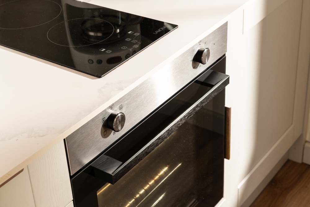 Although open plan, the kitchen/dining area is somewhat sectioned off from the rest of the room, so you won’t be distracted if you don’t do the dishes straight away!