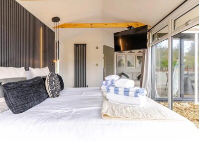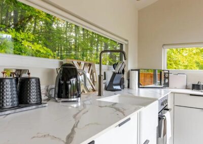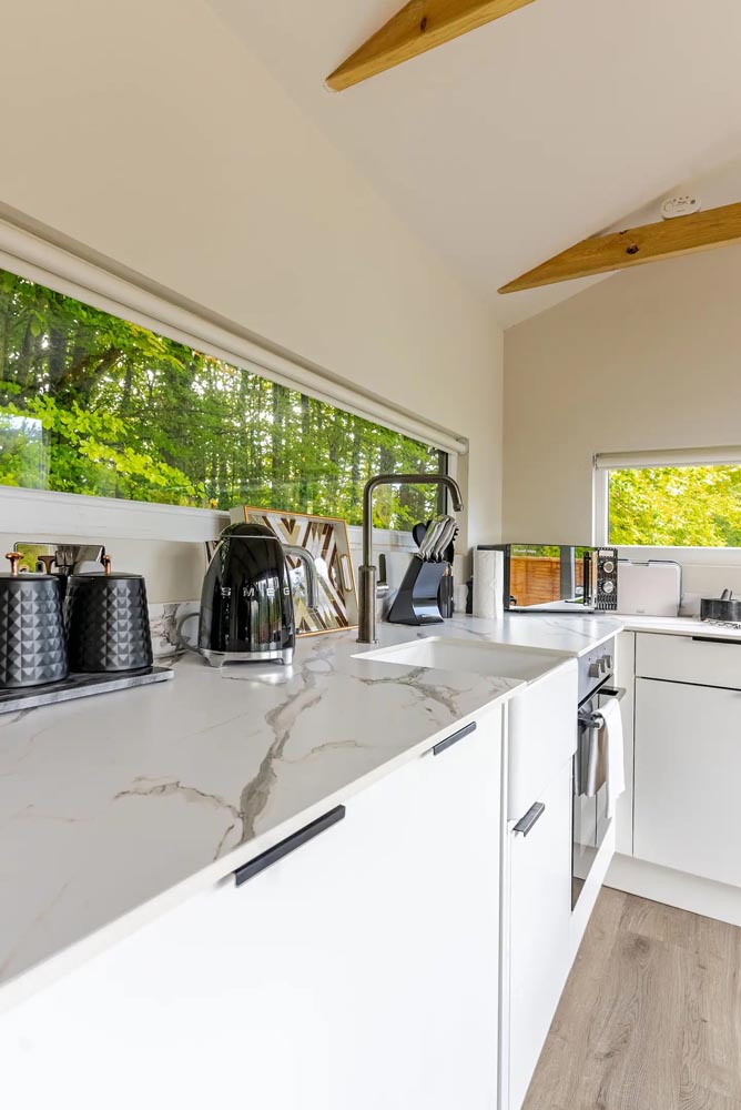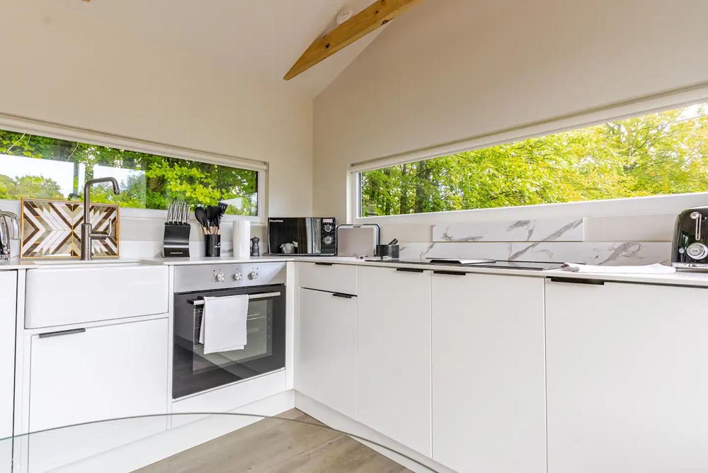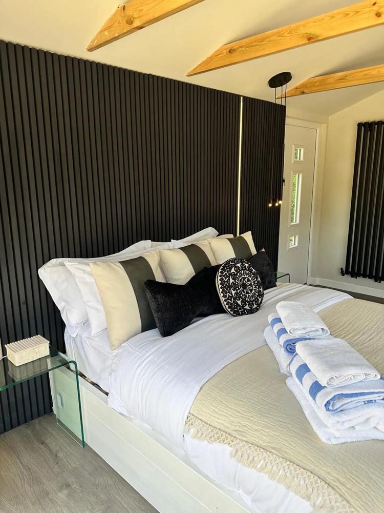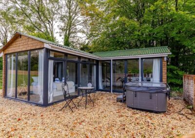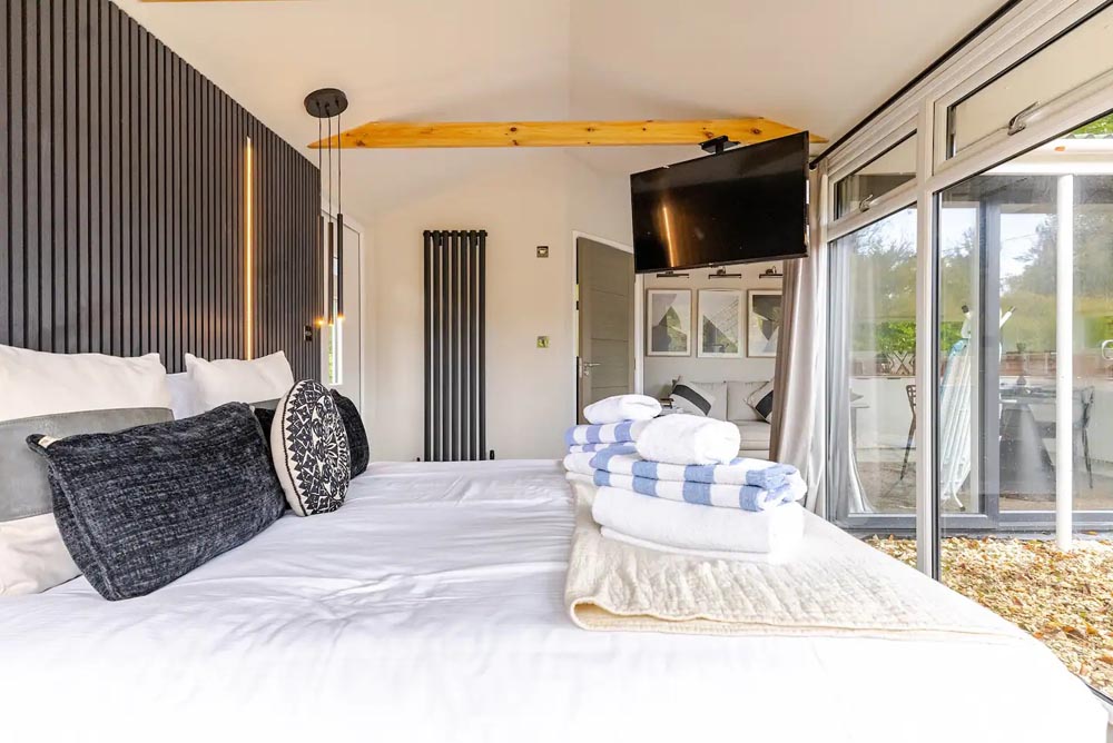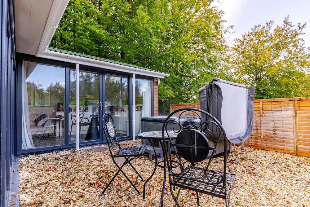 Inside, unwind in front of the TV on the plush velvet sofa or snuggle up in the comfortable double bed. Enjoy the serene views of the garden from the large windows or step outside to the private, fenced garden where you can relax in the outdoor hot tub under the stars.