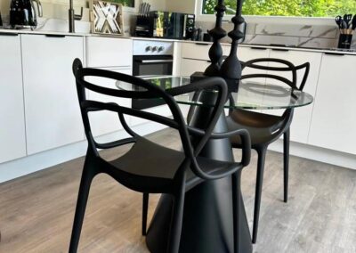 - Dining area: with dining table and chairs.