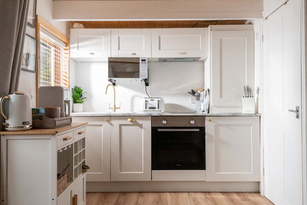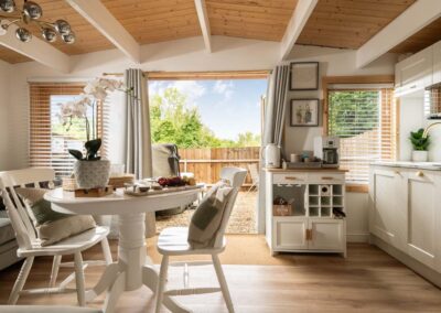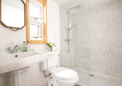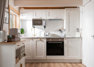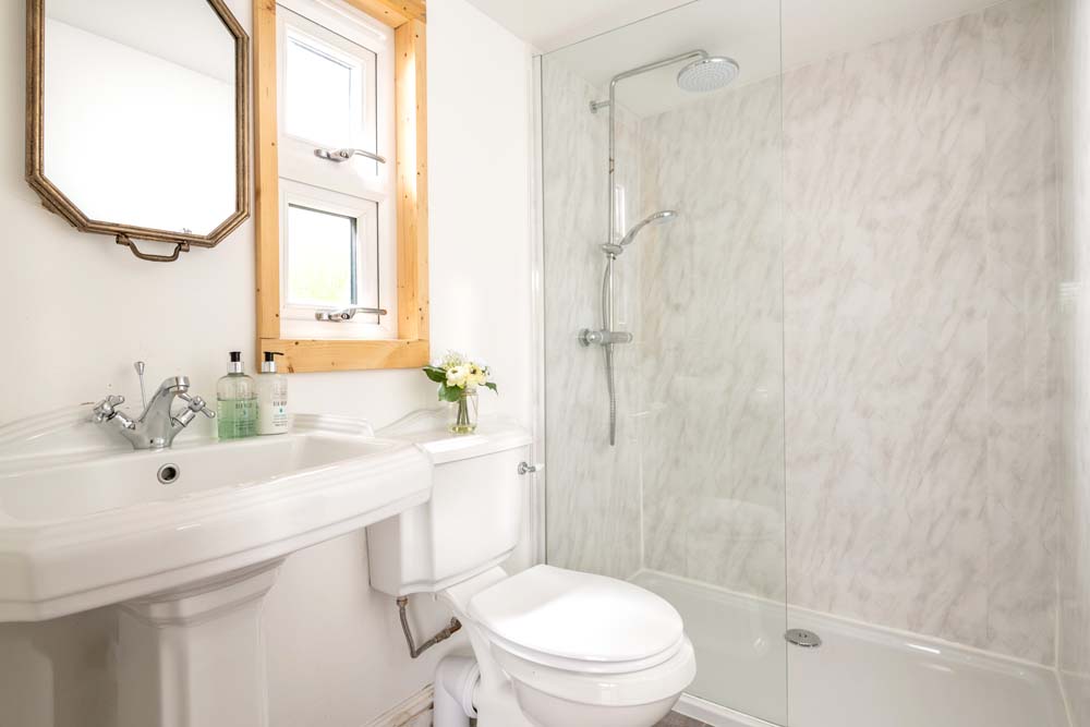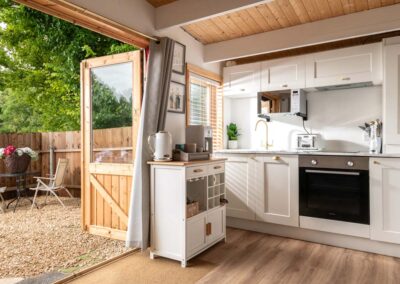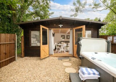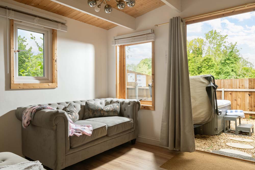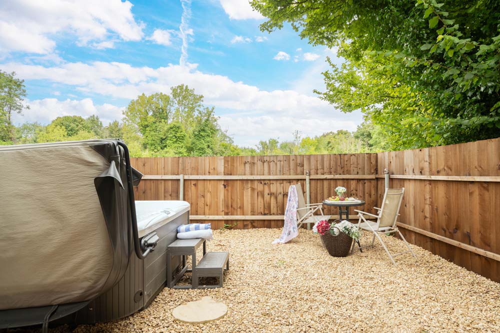 Hazel Cottage’s interior flows seamlessly to the outside where you’ll find a hot tub and a table and chairs on your own private patio. A fence runs around this outside space, providing total privacy, not to mention a secure space for the dog to play in. If you can tear yourself away from this tranquil oasis, you are welcome to explore the many acres at Downwood.