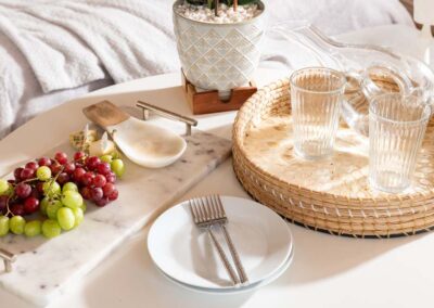 This open-plan, pet-allowed holiday rental is beautifully decorated with warm neutral colours, and a plush velvet bed just waiting for you to sink into.