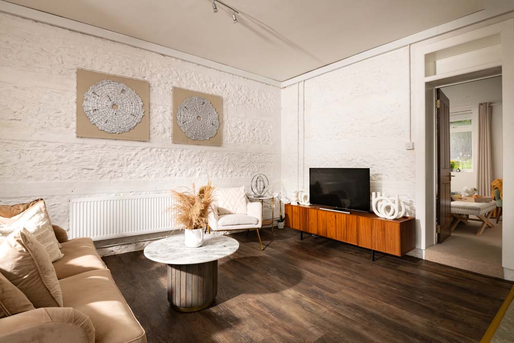 - Living area: with a roomy sofa to stretch out on; and Freeview TV.