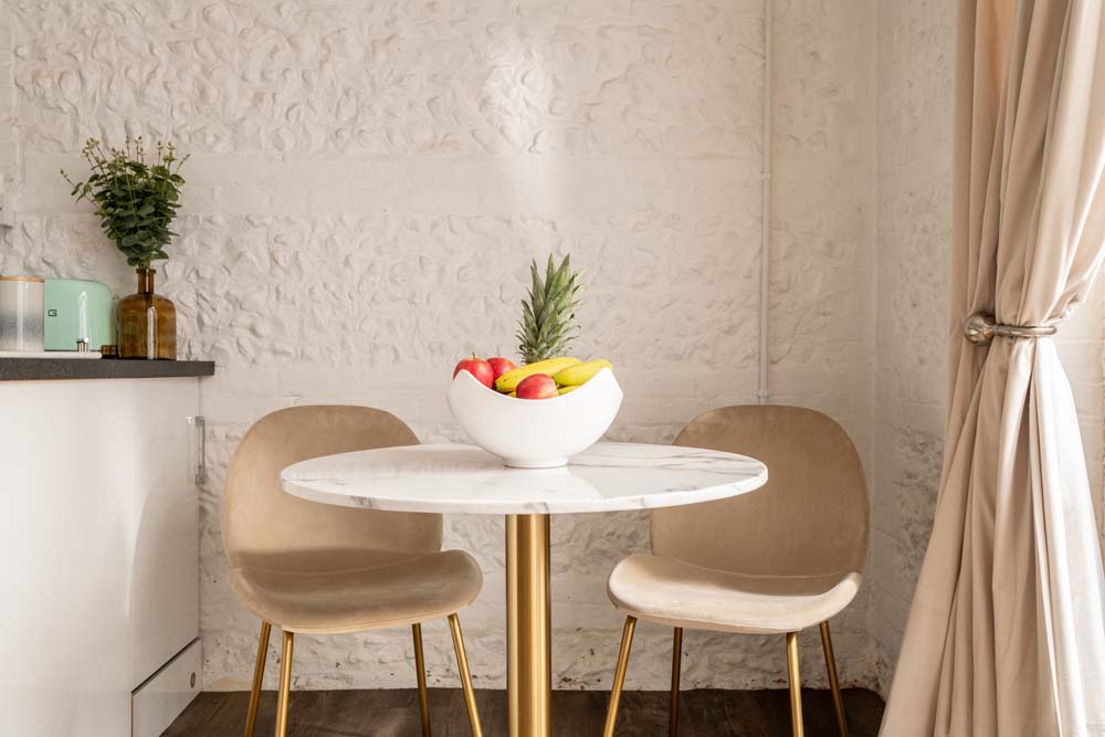 - Dining area: with dining table and chairs.